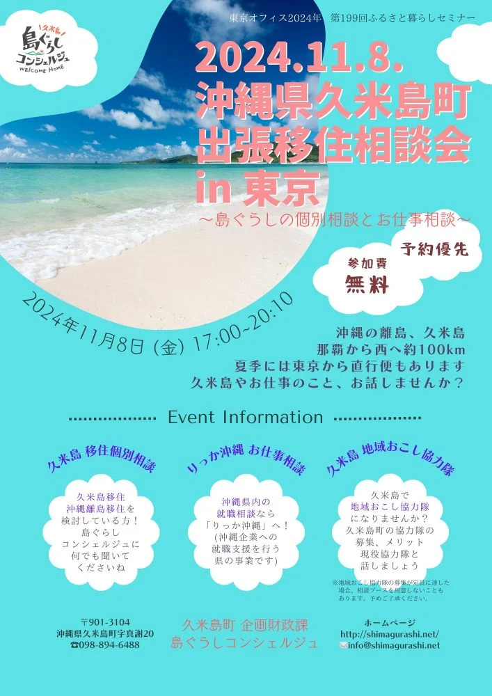 久米島町出張移住相談会in東京が118日(金)に開催されます。