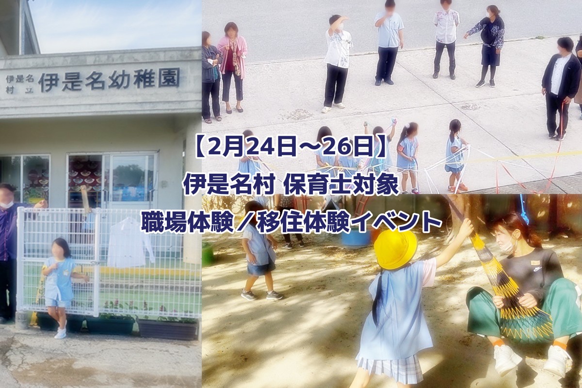 沖縄県北部の人口1300 人弱の小さな島 伊是名村。 そんな伊是名村では、保育士の資格を持っている方向けに職場体験・移住体験を行うイベントが2月24日から2泊3日にて開催されます。 しかも伊是名村滞在中の移動や宿泊費、夕