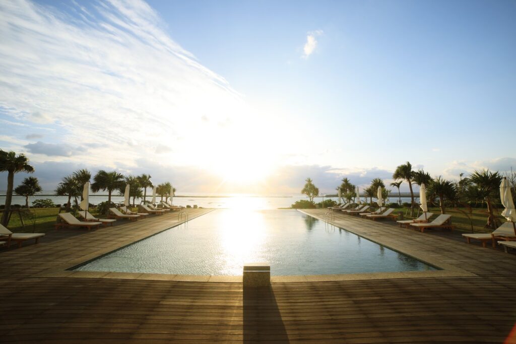一方で、開発が進んで便利になることによって心配されるのは、自然環境が減少し、都心のような環境になってしまうことです。しかし、久米島は自然に囲まれた生活を楽しめる環境が整っており、日本の「渚百選」に選ばれた「イーフビーチ」や、サンゴでできた真っ白な砂浜が広がる「ハテの浜」など、自然の魅力が溢れています。この美しさが久米島の魅力のひとつであり、生活と自然の両方を楽しめる環境となっています。
